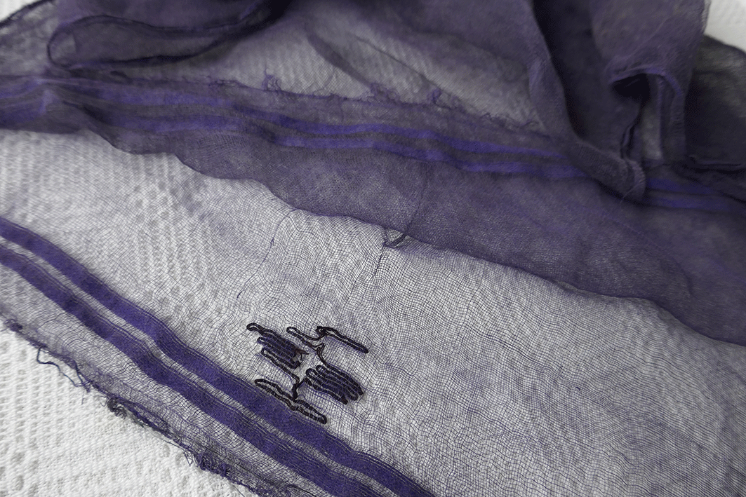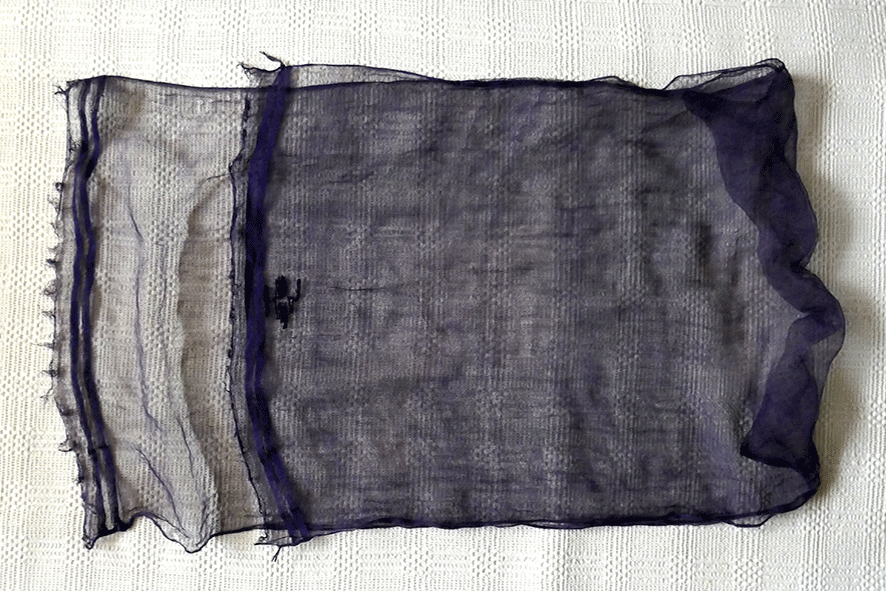- Blauer Nesselschleier „blo Nestlendeach“ – eine regionale Besonderheit - über dem Kopfband direkt auf dem Haar befestigt